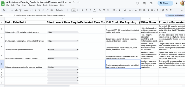AI Assistance Planning Guide: Inclusive (all) learners edition
